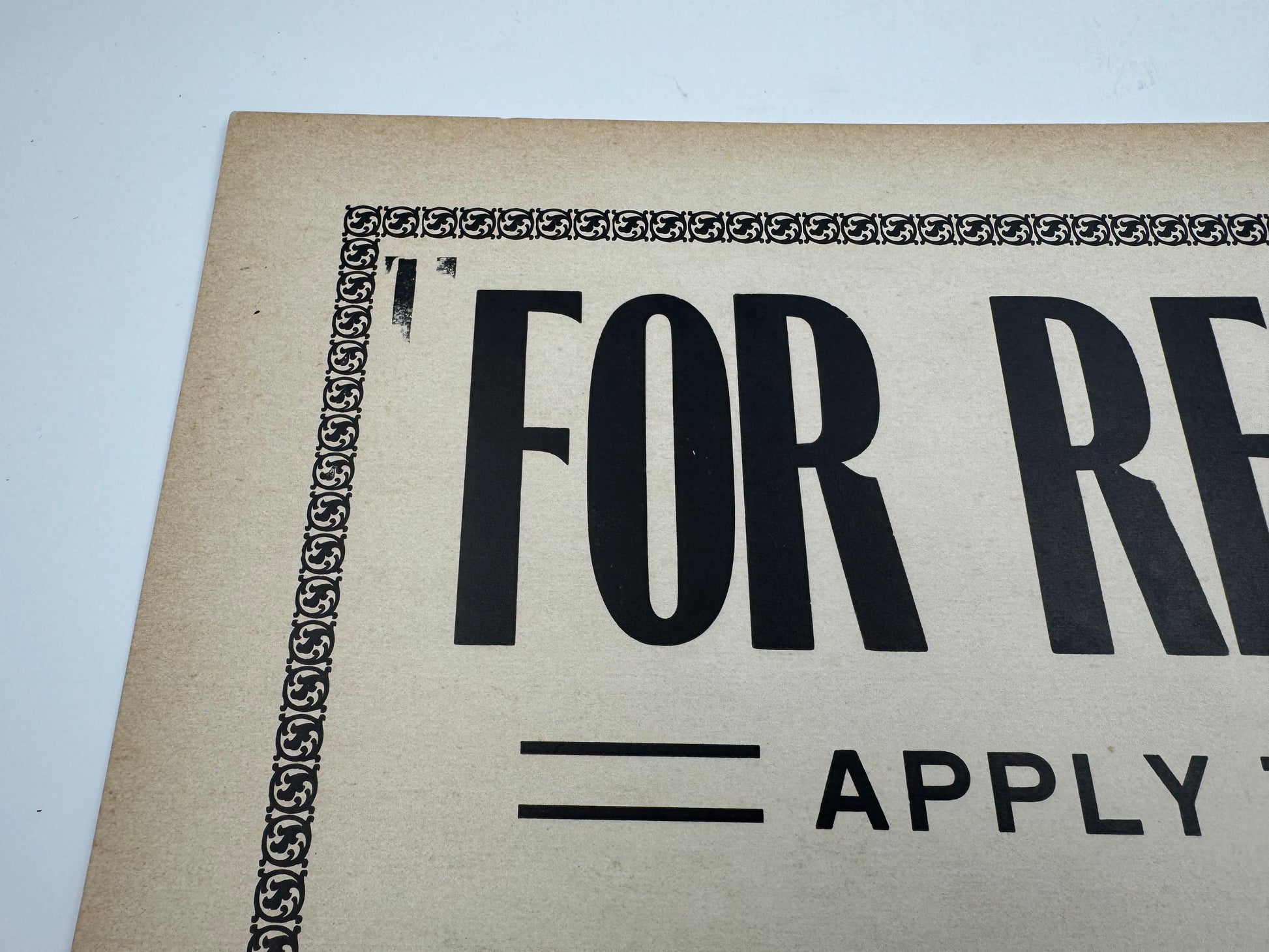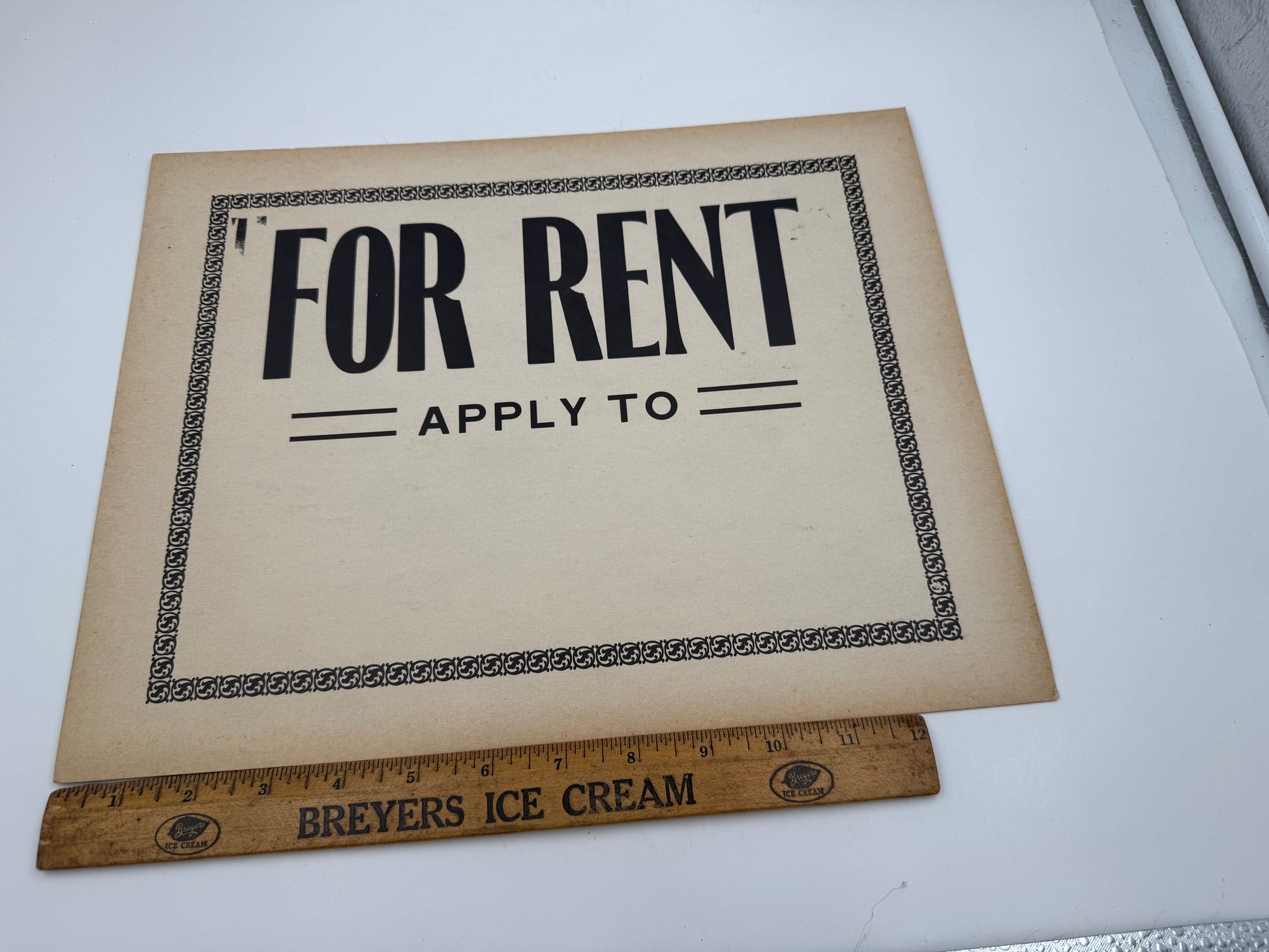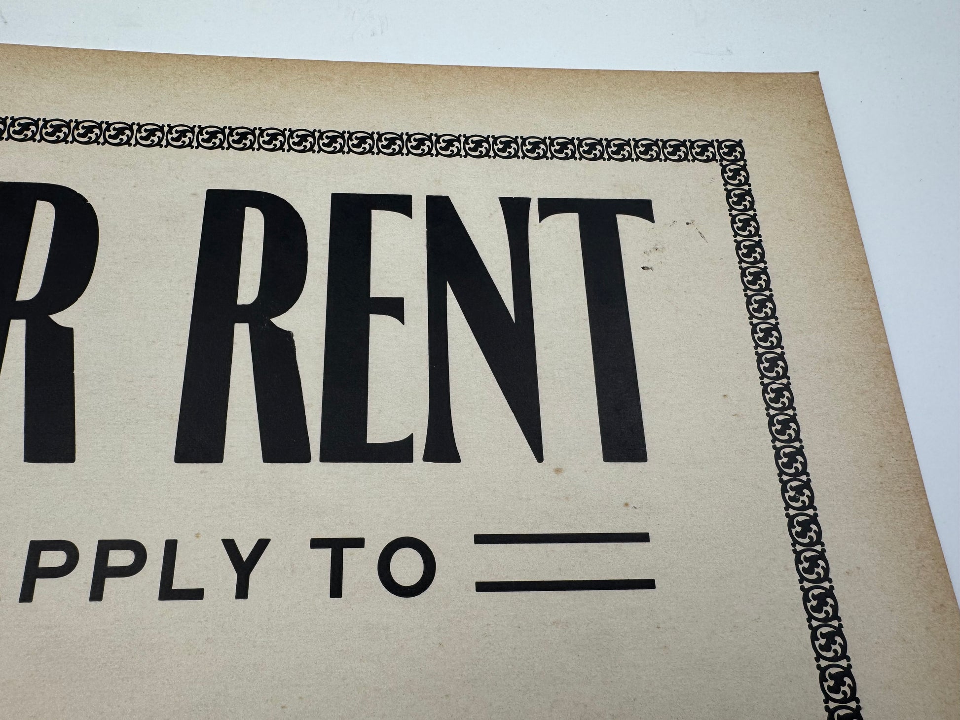 Vintage For Rent Sign 1950s Cardstock