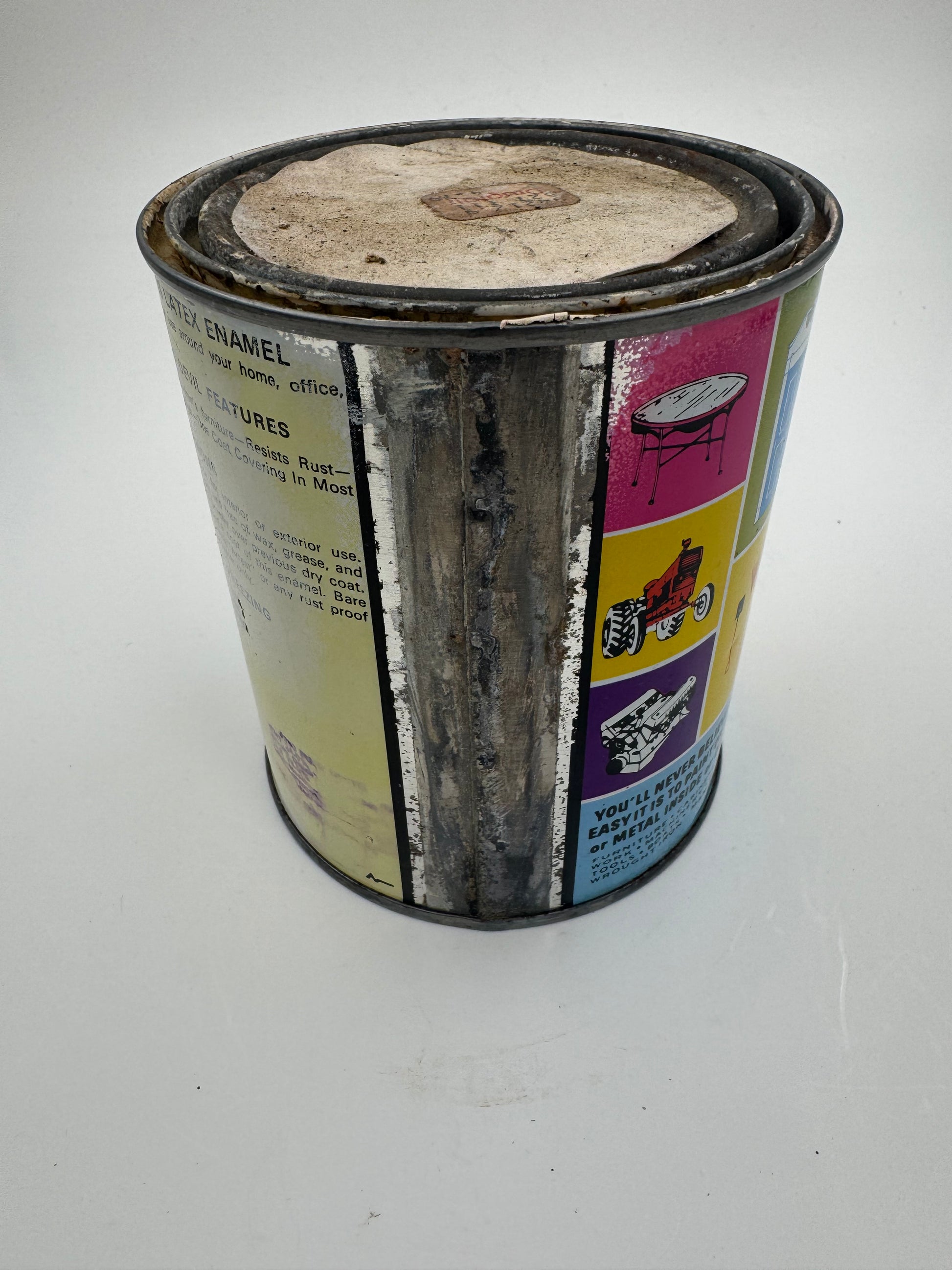 Vintage Red Devil Gloss Latex Enamel Can Full Cool Devil Engine and Tractor Graphics. Some Wear. Buy Here.