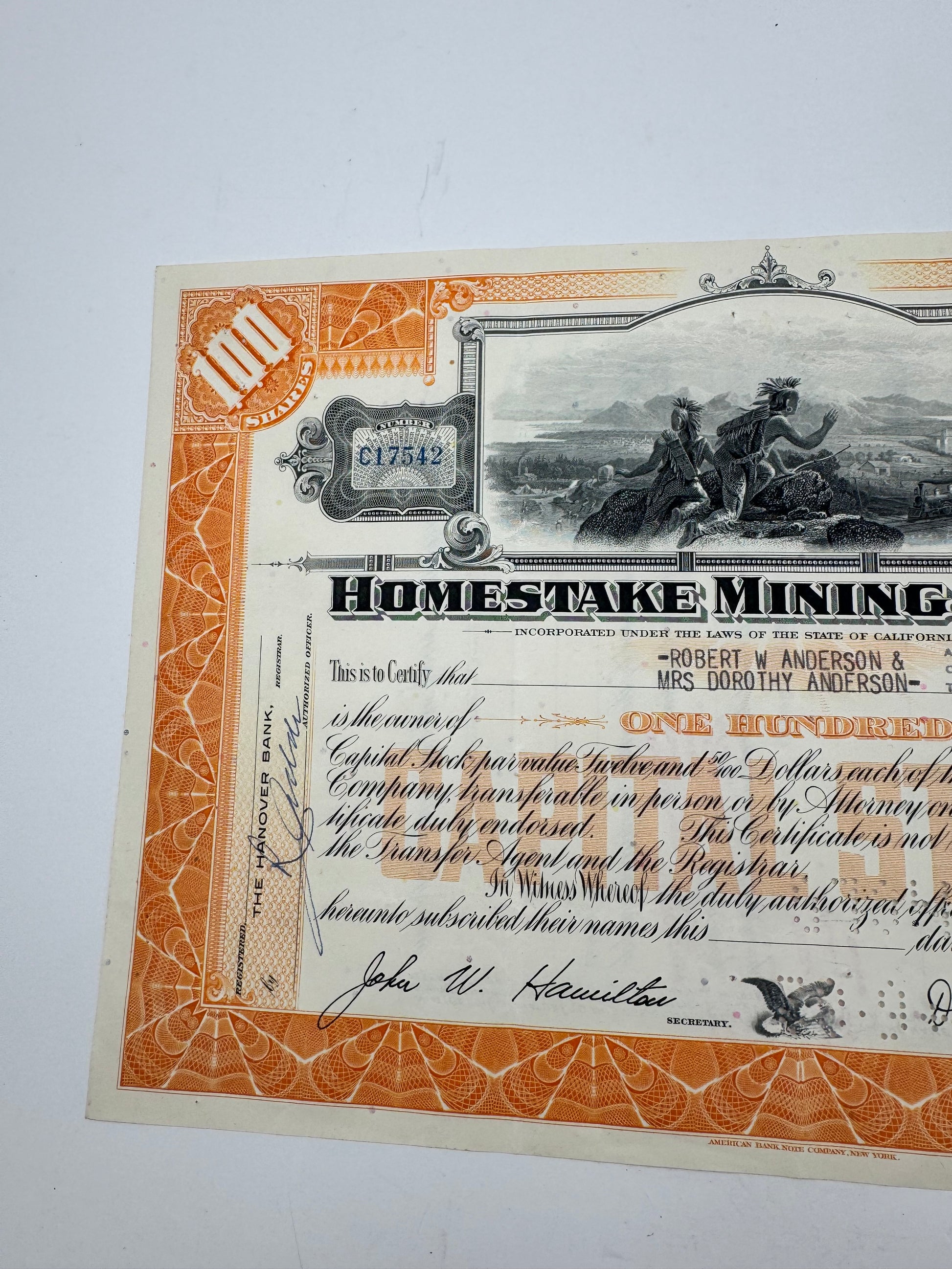 Vintage Stock Certificate Homestake Mining Co. Native American Theme Buy Today.