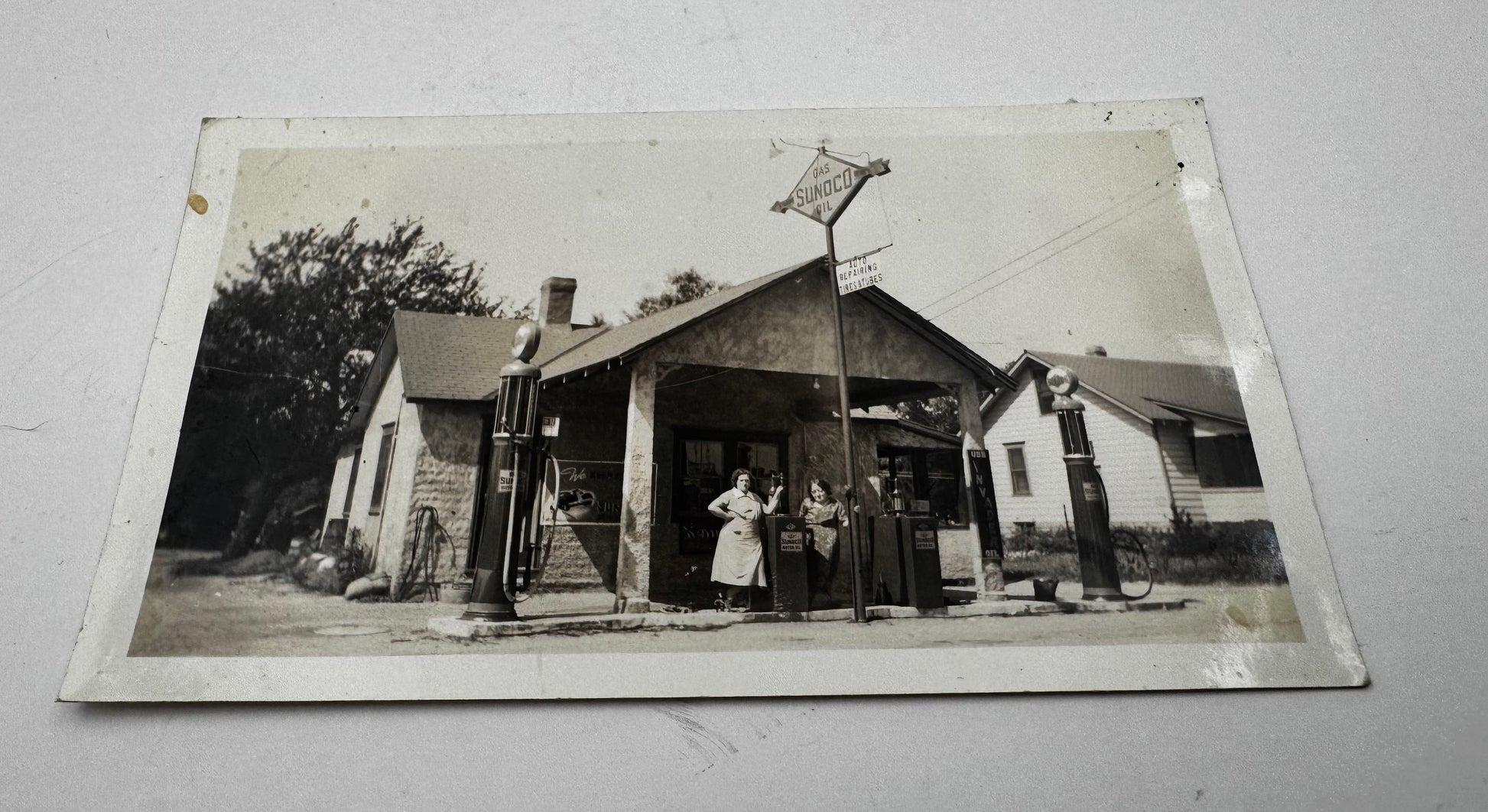 Vintage Gas Station Photos With Women Lot of Two (2) Black and White. SHIPS FREE IN USA